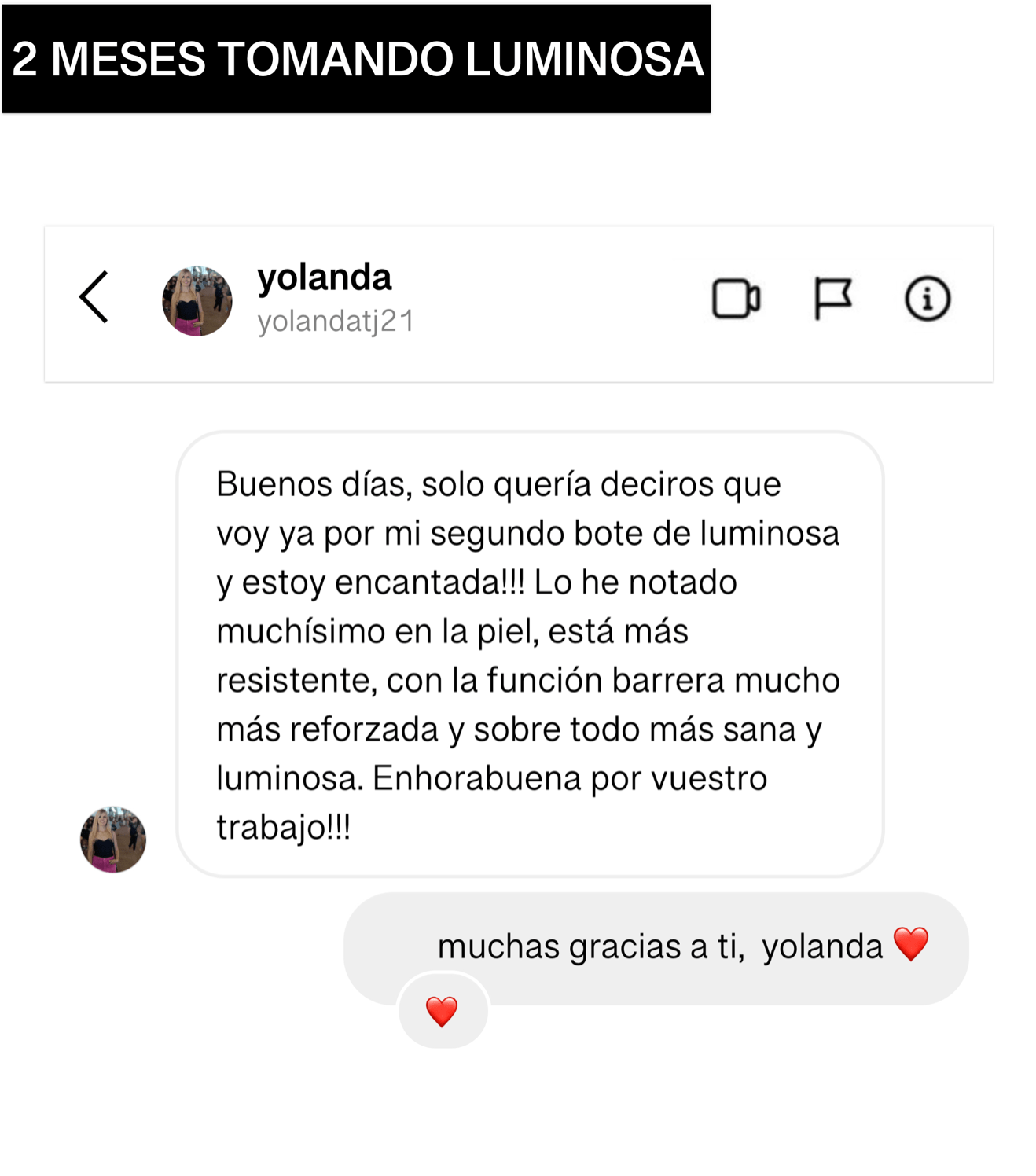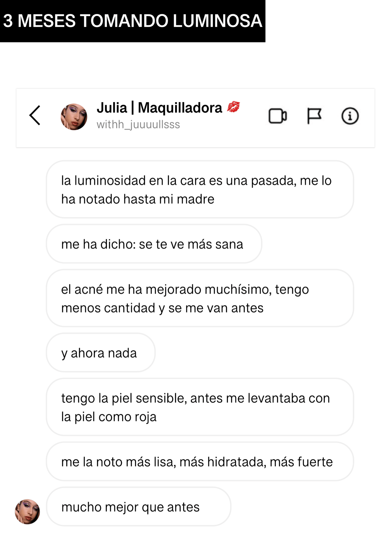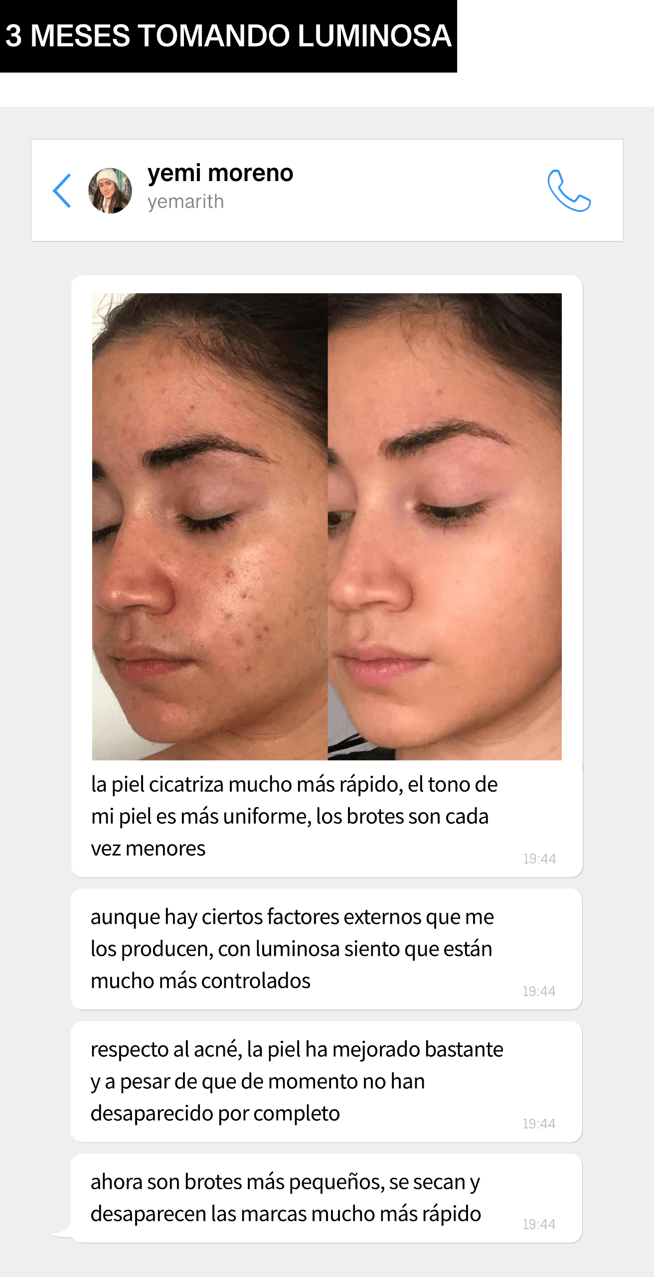 las cápsulas luminosa™ están formuladas en base a 57 evidencias científicas.miles de pieles reparadas con luminosa™.