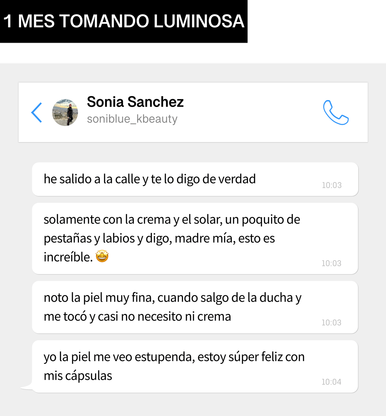 cuando realizas tu primera compra recibes una guía de luminosa para sacarle lo mejor a las cápsulas y un número de whatsapp afrodite para contactar directamente.si te apetece, nuestro equipo puede hacerte un seguimiento personalizado mientras tomas luminosa para que puedas ir viendo la evolución de tu piel.